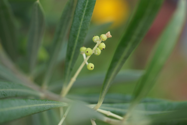 店外、三好大坪交差点の角にある花壇のオリーブに実がなりました!
